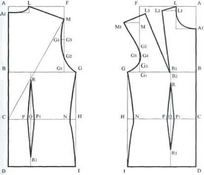 Проведем дугу А1L, которая будет линией горловины спереди.